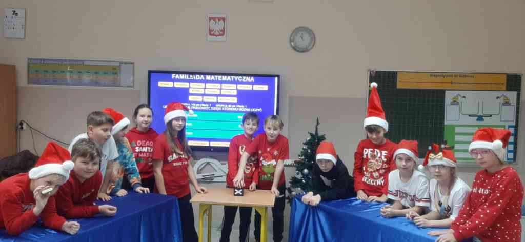 Dziś na lekcjach matematyki czekała na uczniów wyjątkowa niespodzianka — Familiada Matematyczna w mikołajkowym klimacie!