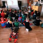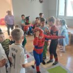 Przedszkolaki z grup przedszkolnych Żabki, Motylki, Mróweczki i Pszczółki świętowały Dzień Postaci z Bajek. Tego dnia w naszym przedszkolu zrobiło się naprawdę magicznie. Dzieci przyszły przebrane za swoich ulubionych bohaterów z bajek – można było spotkać księżniczki, superbohaterów, zwierzątka, czarodziejów i wiele innych barwnych postaci. Podczas wspólnej zabawy przedszkolaki uczestniczyły w tematycznych grach i konkursach, rozwiązywały zagadki bajkowe oraz przypominały sobie przygody swoich ulubionych bohaterów. Nie zabrakło tańców, śpiewu i radości.