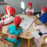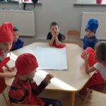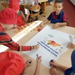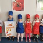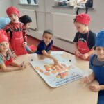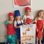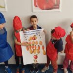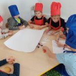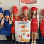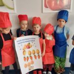 W ramach projektu „W krainie wygasłych wulkanów” odbyły się wyjątkowe zajęcia matematyczne pod hasłem „Jesienne smaki – liczenie warzyw i owoców do sałatki”. Dzieci z grupy 5- i 6-latków wzięły udział w kulinarno-matematycznej przygodzie, podczas której łączyły naukę z zabawą i wspólnym gotowaniem.Na początku zajęć przedszkolaki wspólnie ułożyły przepis na jesienną sałatkę. Zastanawiały się, jakie warzywa i owoce będą im potrzebne – pojawiły się m.in. jabłka, ziemniaki i marchewki. Dzieci przeliczały produkty, porównywały ich ilości, utrwalały pojęcia „więcej”, „mniej”, „tyle samo” oraz doskonaliły umiejętność klasyfikowania według rodzaju i koloru.