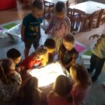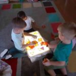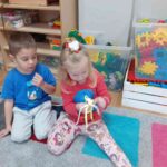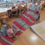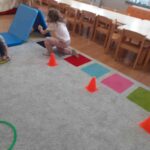 W listopadzie przedszkolaki z grupy „Motylki” rozpoczęły przygodę z projektem edukacyjnym SensoSmyki. Głównym celem projektu jest wspieranie wielozmysłowego rozwoju dziecka, budowanie świadomości ciała, pobudzanie ciekawości poznawczej oraz rozwijanie umiejętności eksploracji poprzez zabawę. W listopadzie skupiliśmy się na dwóch zmysłach – wzroku i propriocepcji. W ramach zmysłu wzroku wykonaliśmy stoliki świetlne. Poprzez obserwacje jak światło przenika przez przezroczyste przedmioty, jak zmieniają się barwy, rozwijaliśmy wyobraźnię, kreatywność i zdolność logicznego myślenia, a także rozwiązywaliśmy sznurówki ćwicząc przy tym zmysł wzroku i sprawność manualną. Drugim zmysłem rozwijanym w ramach projektu była propriocepcja, czyli zdolność odbierania informacji z mięśni, stawów i ścięgien. To dzięki niej dziecko potrafi ocenić ułożenie własnego ciała w przestrzeni, kontrolować siłę nacisku, równowagę i koordynację ruchową. Aby wspierać rozwój tego ważnego zmysłu, pokonywaliśmy przeszkody o różnym stopniu trudności: tunele, podesty, poduchy. Zajęcia ruchowe rozwijały koordynację, równowagę i planowanie ruchu, a także wzmacniały mięśnie głębokie. Ćwiczenia takie jak zwijanie się w „naleśnik” z koca, dociskanie poduszek czy „kanapka” sensoryczna pozwalały nam na wyciszenie, poprawę koncentracji i regulację emocjonalną. Zajęcia są dla nas ciekawe i chętnie w nich uczestniczymy.
