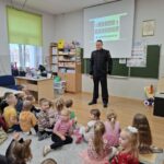 4 grudnia w naszym przedszkolu obchodziliśmy Dzień Górnika, czyli tradycyjną Barbórkę. Z tej okazji odwiedził nas wyjątkowy gość — prawdziwy górnik, który opowiedział dzieciom o swojej pracy, górniczych tradycjach oraz o tym, jak ważną rolę pełni górnictwo w naszym regionie.Już na początku spotkania przedszkolaki z zaciekawieniem przyglądały się górniczemu mundurowi. Nasz gość wyjaśnił, co oznaczają kolory pióropusza na czapce, do czego służą poszczególne elementy stroju oraz jakie znaczenie mają górnicze symbole, takie jak młotki skrzyżowane, czyli pyrlik i żelazko. Pan górnik opowiedział także o bezpieczeństwie pod ziemią, jak poruszają się górnicy w kopalni oraz jakie maszyny pomagają im w codziennej pracy. Przedszkolaki chętnie zadawały pytania – chciały wiedzieć, jak głęboko pracują górnicy, czy pod ziemią jest ciemno oraz czy trudno jest znaleźć węgiel. Nasz gość cierpliwie odpowiadał na wszystkie pytania i pokazywał zdjęcia ze swojej pracy.