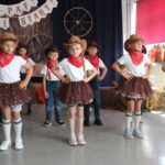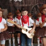Dziki Zachód zawitał do naszego przedszkola! W tym roku zakończenie roku przedszkolnego miało wyjątkowy klimat! 25 czerwca nasza zeróweczka Żabki zmieniły swoją salę w prawdziwe miasteczko rodem z Dzikiego Zachodu. Przedszkolaki, rodzice oraz zaproszeni goście Dyrektor Bogusława Kałużna oraz Zastępca Wójta Arleta Gregulska-Oksińska przenieśli się w czasie i przestrzeni – wprost na kowbojską prerię!