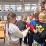 W środę, 26 listopada w naszej szkole odbyła się wyjątkowa Andrzejkowa Zabawa Taneczna przygotowana dla uczniów klas 1–3. Od pierwszych minut dzieci chętnie uczestniczyły w tańcach oraz zabawach integracyjnych. Podczas wydarzenia zaplanowano również chwilę na wspólne czytanie, które wprowadziło uczestników w spokojniejszy nastrój, sprzyjając relaksowi i wyciszeniu. Nie zabrakło też poczęstunku, który pozwolił dzieciom nabrać sił do dalszej zabawy. Całość przebiegała w przyjaznej, ciepłej atmosferze, a uczniowie z zaangażowaniem brali udział w przygotowanych aktywnościach.
