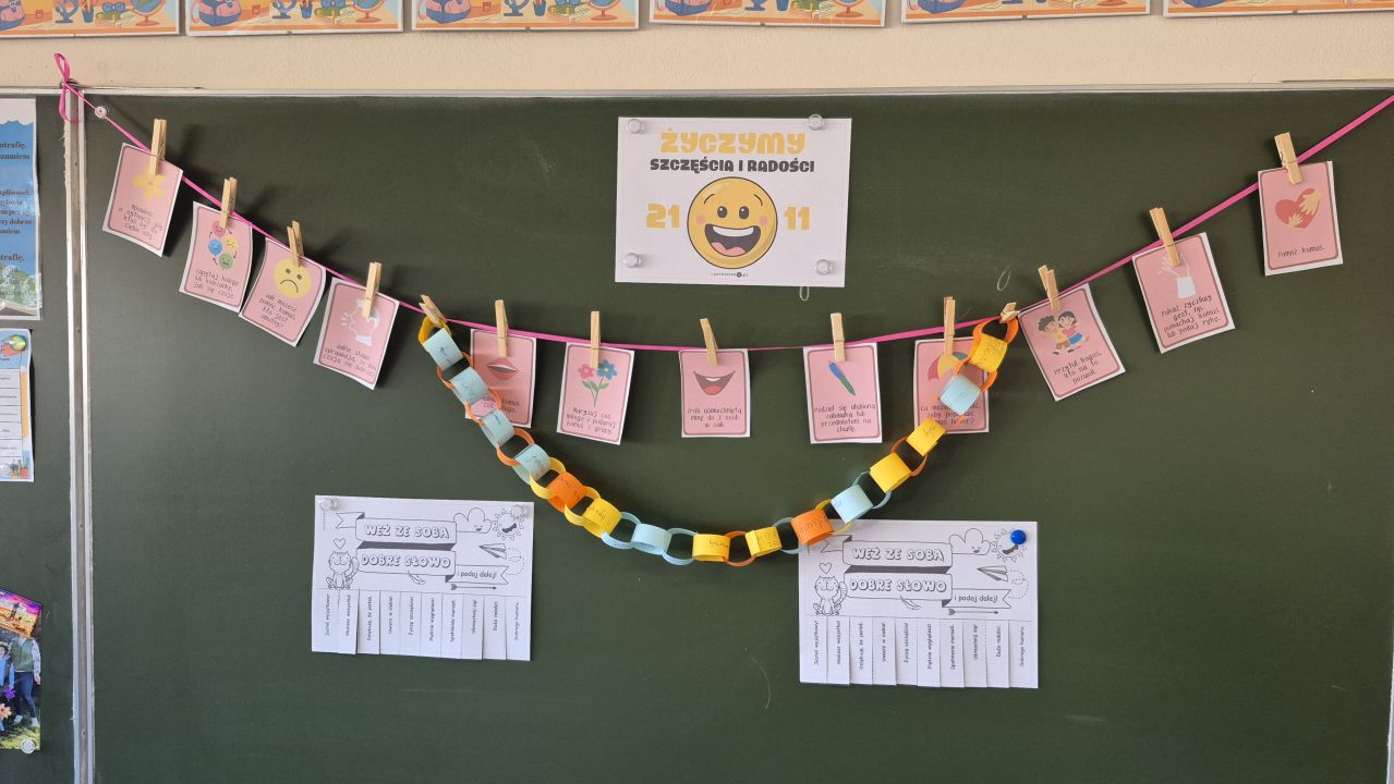 Klasa 2a świętowała Dzień Życzliwości, tworząc wyjątkowy Łańcuch Życzliwości z dobrymi słowami od wszystkich uczniów. Wspólna akcja wypełniła klasę atmosferą ciepła, uśmiechu i wzajemnego wsparcia.