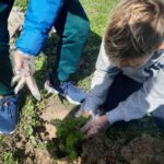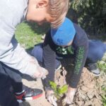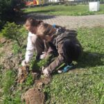 Najciekawszym etapem okazały się jednak zajęcia praktyczne. Uczniowie uzupełnili teren wokół szkoły o nowe nasadzenia, sadząc jodły, które wzbogaciły istniejący już układ przestrzenny.