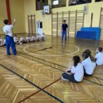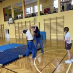 Goście przeprowadzili również lekcję pokazową, w której uczniowie mogli spróbować gier i zabaw, gimnastyki i ćwiczeń tej dyscypliny. Zajęcia były pełne pozytywnej energii, a dzieci z ogromnym zainteresowaniem brały udział w aktywnościach.