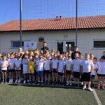 Podczas zajęć gościliśmy wyjątkowych trenerów – Michała Grządkowskiego oraz  Damiana Pachurę, którzy z ogromnym zaangażowaniem prowadzili ćwiczenia, motywowali uczniów i dzielili się swoją sportową pasją. W wydarzeniu uczestniczył również dyrektor podokręgu Legnica Zygmunt Kogut (DZPN), który podkreślił, jak ważne jest wspieranie dzieci i młodzieży w rozwijaniu talentów sportowych oraz budowaniu nawyków aktywnego spędzania czasu. Uczniowie z entuzjazmem brali udział w różnorodnych konkurencjach i grach zespołowych, ucząc się współpracy, zasad fair play i radości płynącej z ruchu.