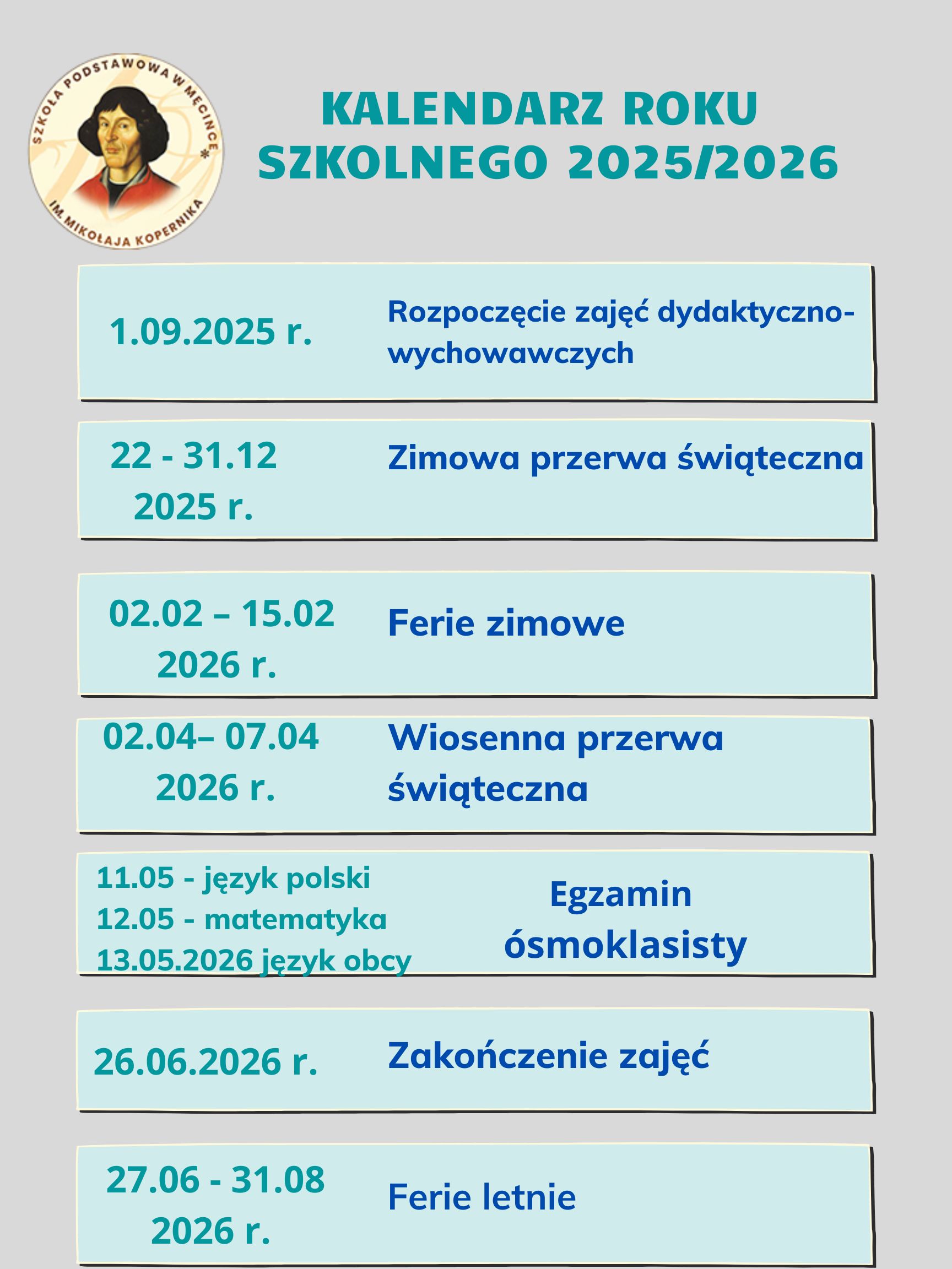 KALENDARZ ROKU SZKOLNEGO 2025/2026