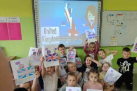 Uczniowie kl. 1b poznali i wykonali flagę Wielkiej Brytanii. To już drugie zadanie w ramach projektu „Angielski jest fun-tastyczny”.