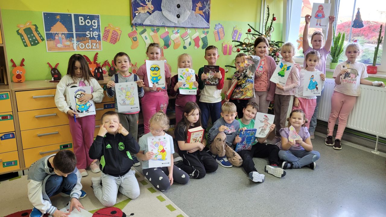 Uczniowie klasy 1b mieli okazję wziąć udział w lekcji bibliotecznej na temat bajek i baśni. Najpierw wysłuchali kilka znanych i mniej znanych opowieści, które przeczytała im pani Agnieszka. Pierwszaki z zainteresowaniem obejrzały też ilustracje książkowe. Następnie każde dziecko wybrało sobie kolorowankę i samo stworzyło ilustrację do bajki lub baśni. Zajęcia odbyły się w ramach działań Narodowego Programu Rozwoju Czytelnictwa na lata 2021-2025.