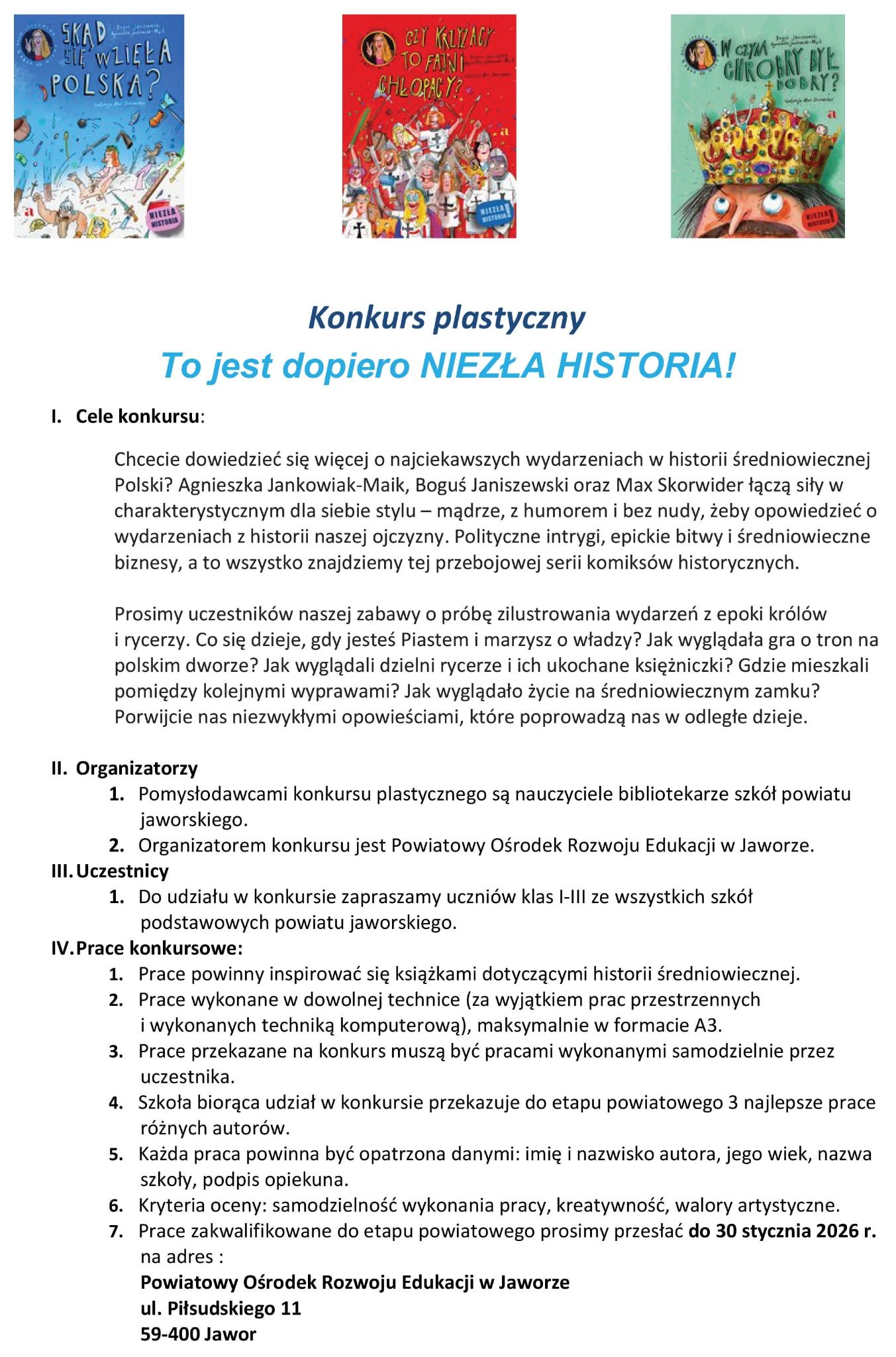 Biblioteka zaprasza do konkursu powiatowego 15 grudnia, 2025szkolazszmecinkaIn: Nowości - Szkoła Podstawowa Zapraszamy uczniów klas 1-3 do konkursu proponowanego przez Bibliotekę Pedagogiczną w Jaworze. Prace należy najpierw złożyć na etap szkolny do biblioteki szkolnej w terminie do 27 stycznia 2026 r.