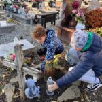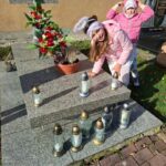 Z okazji Dnia Wszystkich Świętych i Święta Zmarłych i uczniowie klas I–III wybrali się na cmentarz w Męcince, aby uczcić pamięć zmarłych. W ciszy i skupieniu zapalili znicze na wybranych grobach oraz pod pomnikiem papieża Jana Pawła II, oddając hołd wielkiemu Polakowi. Wyjście było okazją do rozmowy o szacunku, pamięci i wdzięczności wobec przodków oraz lokalnej historii. To była ważna lekcja empatii i wychowania do wartości.